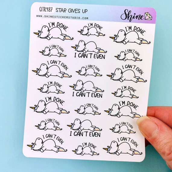 Star Gives up Cute Emoji Character Unicorn Stickers Happy Etsy